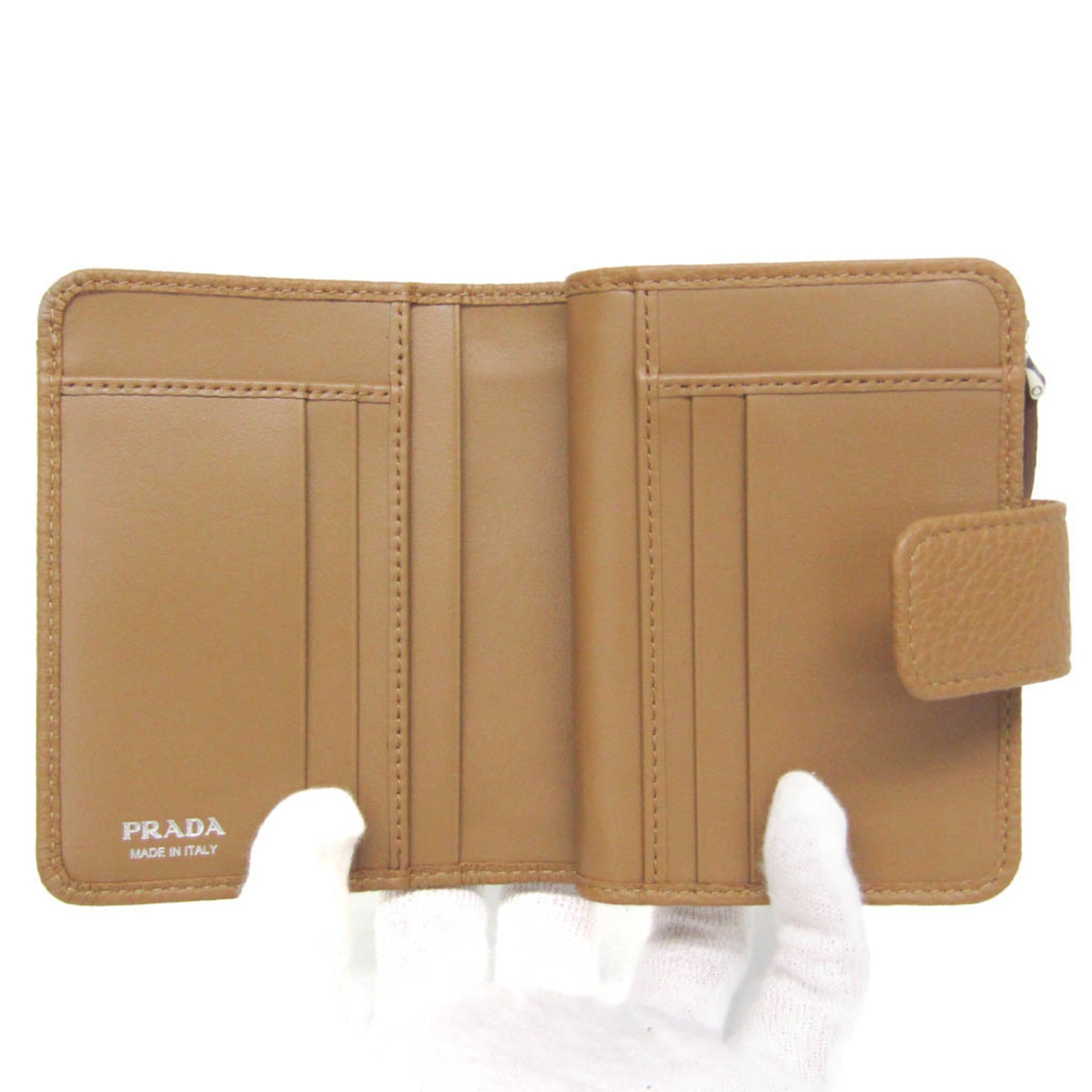 Prada VITELLO DAINO 1ML018 Women\'s Leather Middle Wallet (bi-fold) Camel