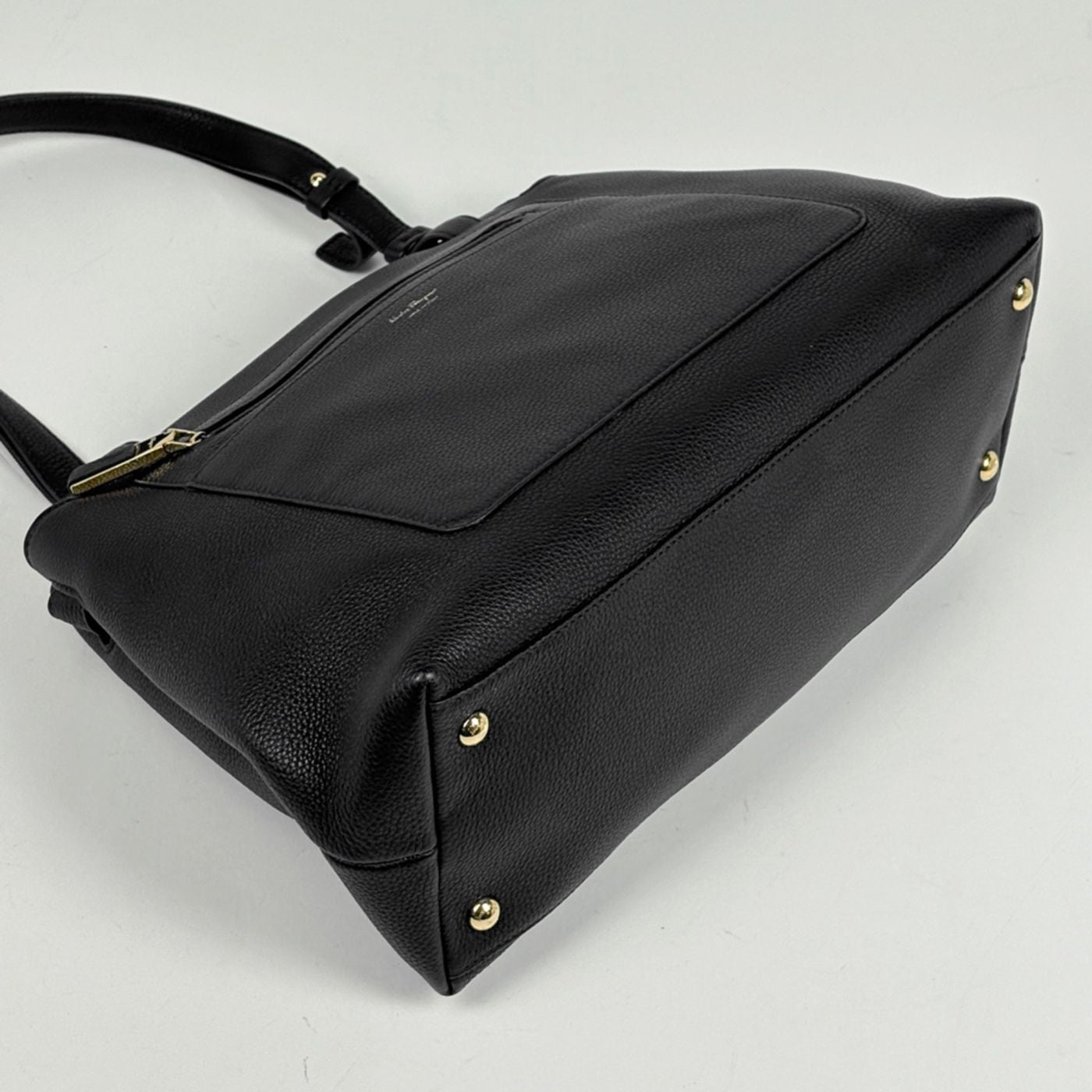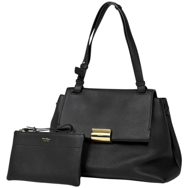 Salvatore Ferragamo logo shoulder bag, handbag, leather, black, women\'s.
