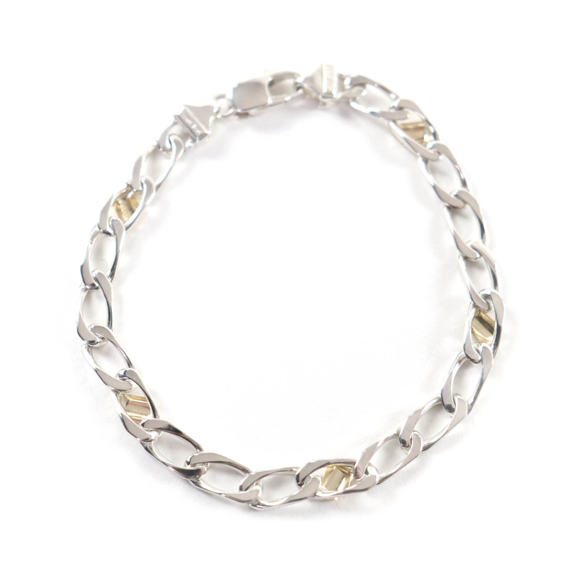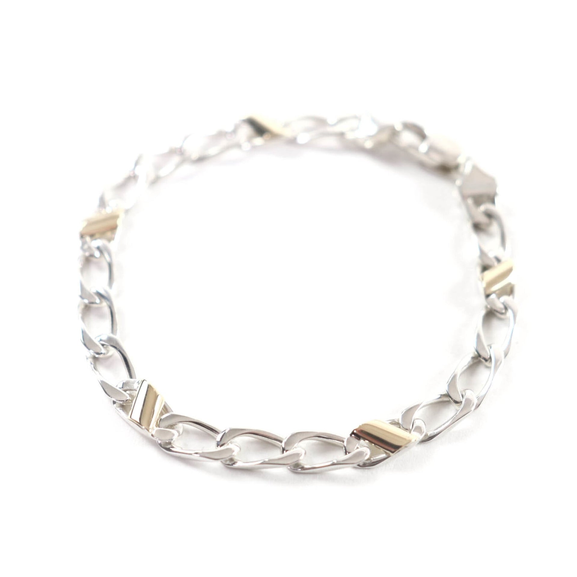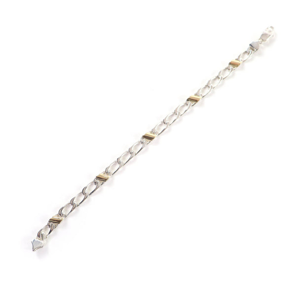 TIFFANY&Co. Tiffany Vintage 925 750 Figaro Chain Bracelet, Silver and Gold, Made in Italy, Weight 11.4g, Women\'s.