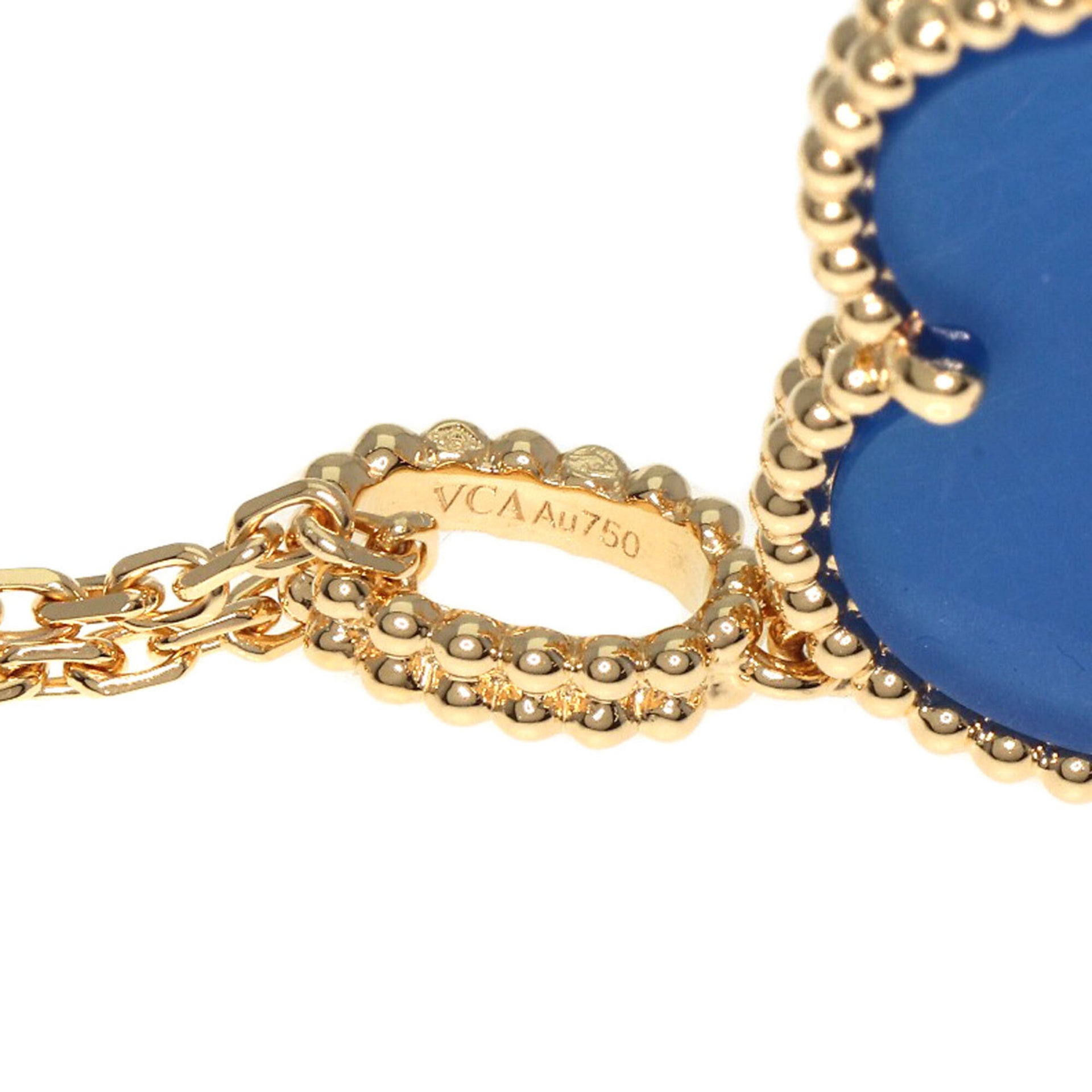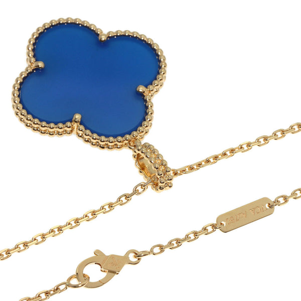 Van Cleef & Arpels Magic Alhambra Blue Agate Necklace, 18K Yellow Gold, Women\'s.
